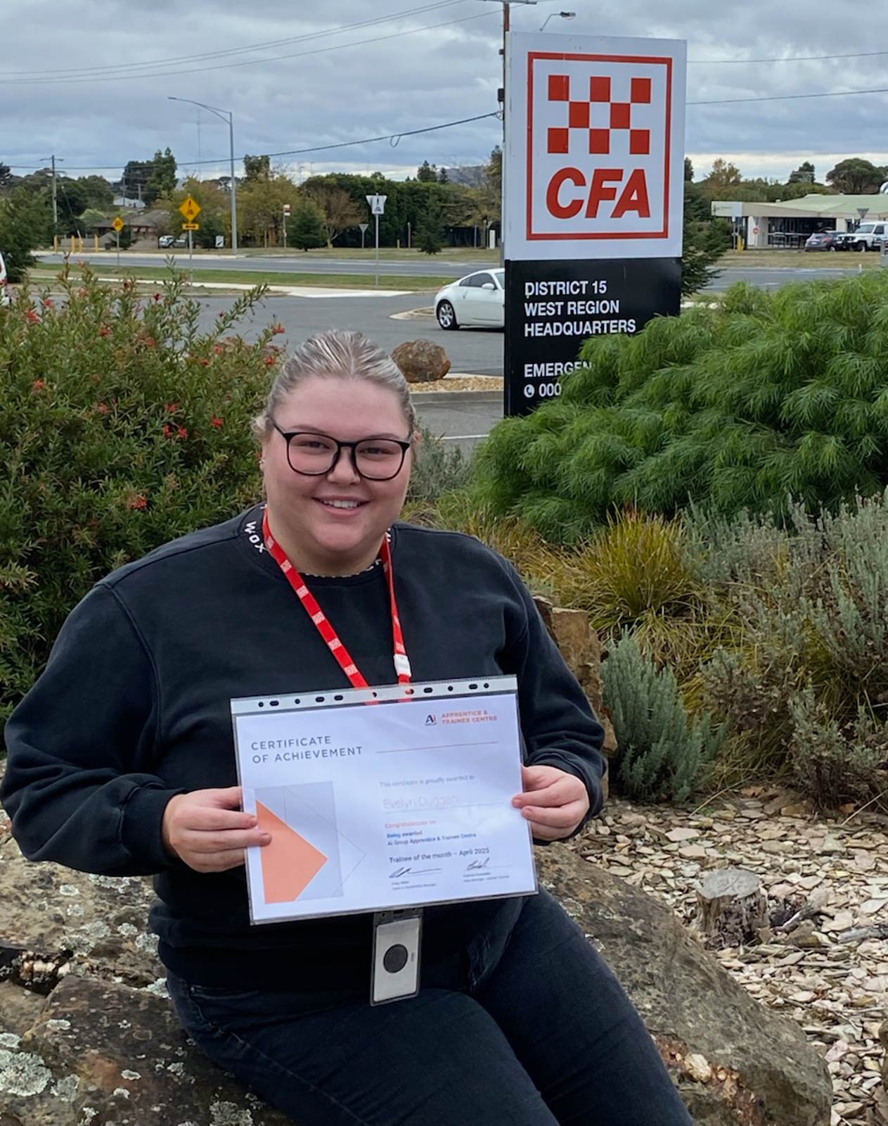 Evelyn is completing a Business Administration traineeship with the Country Fire Authority (CFA) in Wendouree, Victoria, and has made a lasting impression on both her colleagues and supervisors.