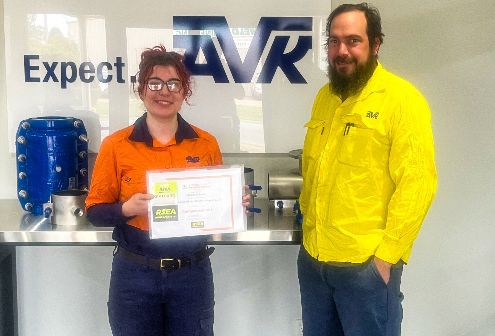 | Michaela, who commenced her apprenticeship in January 2022 in Mechanical Fitting, has been recognised for her enthusiasm and willingness to learn in the workplace. She is in the second stage of her apprenticeship with host company AVK Wang in Wangaratta, central Victoria. Her supervisor, Michael Dalbrum, welcomed the news of the award. “I have been so impressed with Michaela’s ability to develop new skills,” he said. “Her advancement from not knowing how to weld at the commencement of her apprenticeship to now ‘awesome’ TIG welds on stainless steel is amazing! Her development of skills on the lathe and mill have also been really impressive. Michaela is always willing to take the time to try to work through problems on pneumatic systems, and we joke that the hydraulic systems contractors must be tired of her questions by now! Michaela’s involvement with the safety committee is also highly regarded across the factory as she helps to look for ways to constantly improve safety and processes.” Australian Industry Group ATC Albury Area Manager Chanon Ramos said: “It’s been great to see Michaela’s growth as an individual – from recently gaining her First Aid certificate, joining the Work Health & Safety committee at AVK and achieving amazing results at TAFE.” There is a growing number of opportunities for females in engineering and manufacturing trades, and Australian Industry Group ATC sees Michaela as an inspiring role model. The whole team at Australian Industry Group ATC is super proud of Michaela, and AVK Wang is equally appreciative of the dedication and effort Michaela applies to her apprenticeship. Well done, Michaela! |