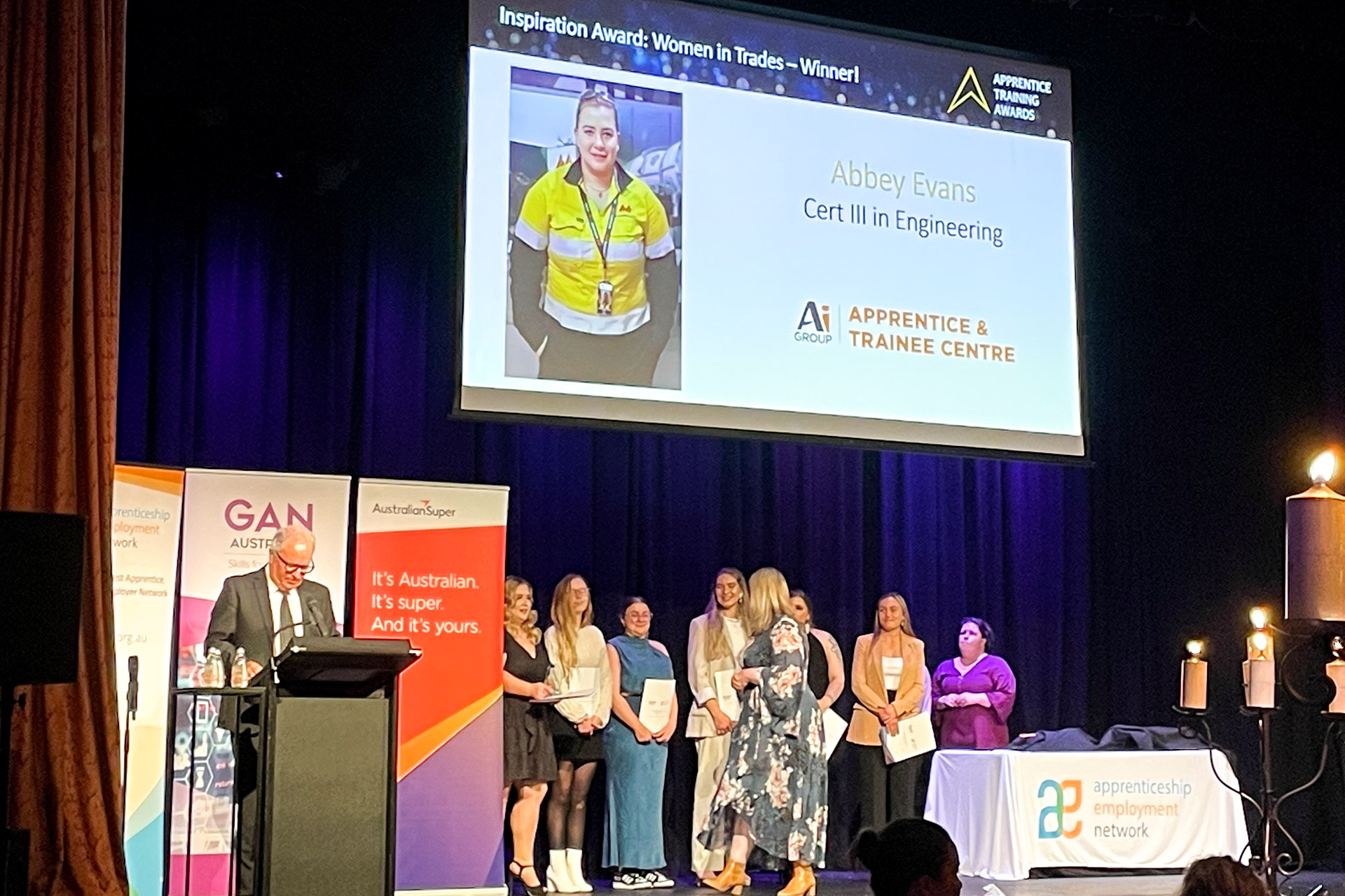 An Australian Industry Group apprentice who scooped a Women in Trades Award this week credits her apprenticeship for changing her life.