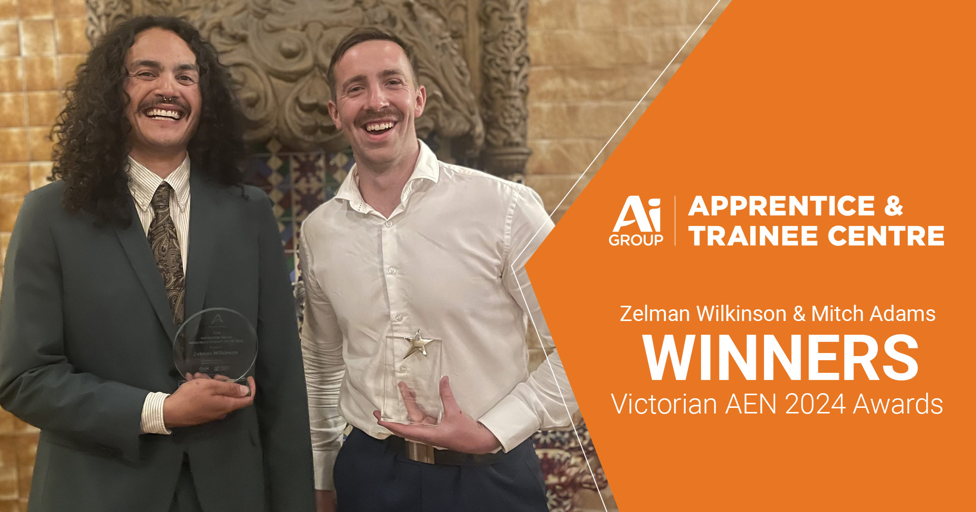 Australian Industry Group Apprentice and Trainee Centre (Australian Industry Group ATC) celebrated a stellar evening at the Victorian Apprentice Employment Network (AEN) Awards in Melbourne last night, with two of our exceptional apprentices taking home top honours.