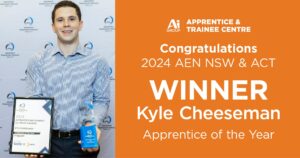 An Australian Industry Group Apprentice and Trainee Centre (Australian Industry Group ATC) stand-out scooped the top award at an awards ceremony in Sydney on Friday night. Kyle Cheeseman, a Mechanical Engineering apprentice hosted to Coca-Cola Europacific Partners (CCEP), was named Apprentice of the Year at the NSW Apprentice Employment Network (AEN) Awards. Accepting his award, […]